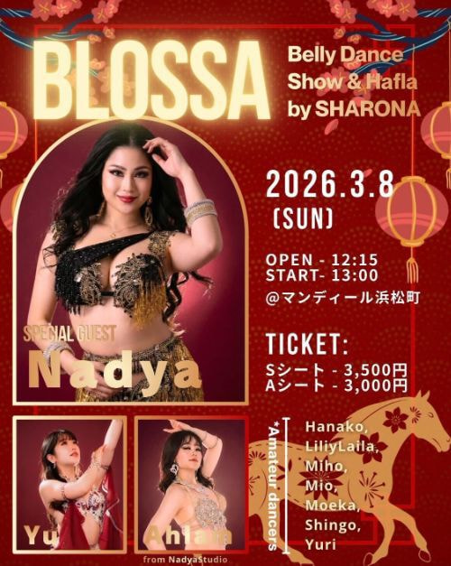 アラビア語ではラクス・シャルキー(رقص شرقي)と呼ばれ、「東洋の踊り」を意味します。英語にすると「オリエンタルダンス」です。ベリーダンスには様々なスタイルがあるのも魅力の一つ。代表的なものはオリエンタル、フォークロア、ジプシー、トライバル、フュージョンです。オリエンタルの中にもエジプシャンスタイルとターキッシュスタイルがあり、Nadya Studioではエジプシャンを主に学ぶことができます。お腹や腰回りをたくさん使うので、くびれ作りやシェイプUP等ボディメイクとしても人気です。また、ベリーダンスを踊ると女性ホルモンが活性化されるため、内側から女性らしさが増してくるのを実感することができるでしょう。身体に無理なくいつまでも踊れるダンスですので、ぜひベリーダンスであなたの人生を豊かにしてください。